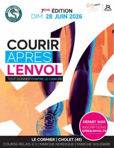 Le 28 juin 2026 – COURIR APRÈS L’ENVOL Course relais x 3, marche nordique et marche solidaire Pour aller plus vite que le cancer, une belle façon de lutter baskets aux pieds.